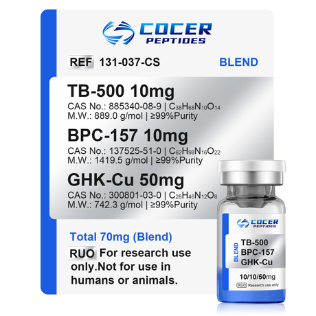 Glow Blend 70mg is a peptide blend supplied for controlled laboratory and analytical research. COCER Peptides lists its peptide products as RUO / for research use only, with purity claims shown on the source site. For research, laboratory, or analytical use only. Not for human or veterinary consumption. Not intended to diagnose, treat, cure, or prevent any disease.